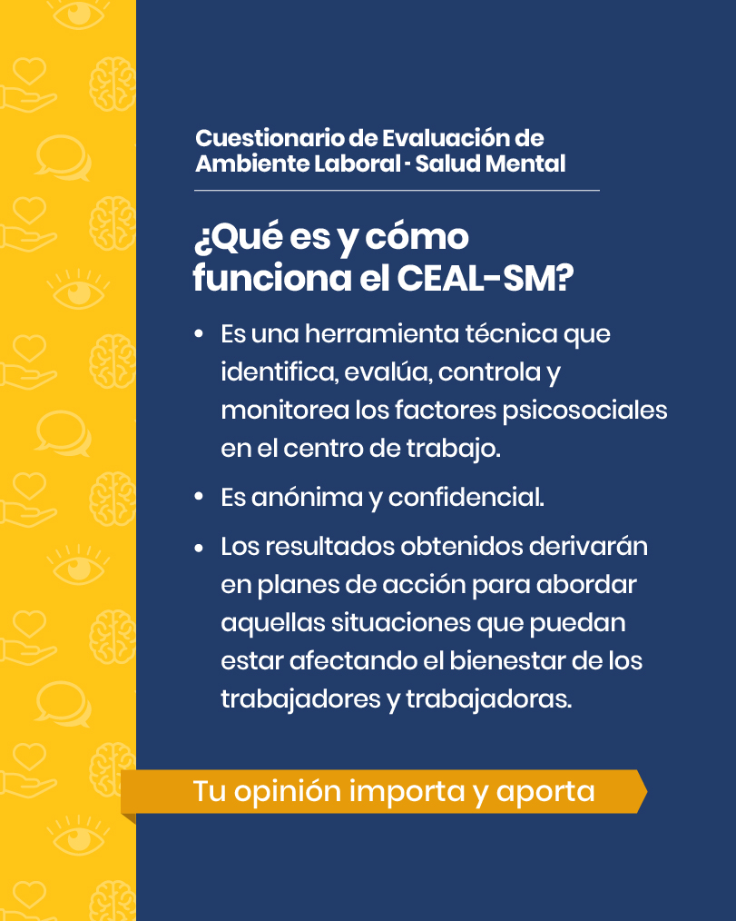 - La forma de evaluar los riesgos psicosociales será mediante el nuevo Cuestionario de Evaluación de Ambientes Laborales en Salud Mental (CEAL-SM) de la Superintendencia de Seguridad Social, que reemplaza al instrumento SUSESO ISTAS 21, y que entró en vigor el 1 de enero de 2023.