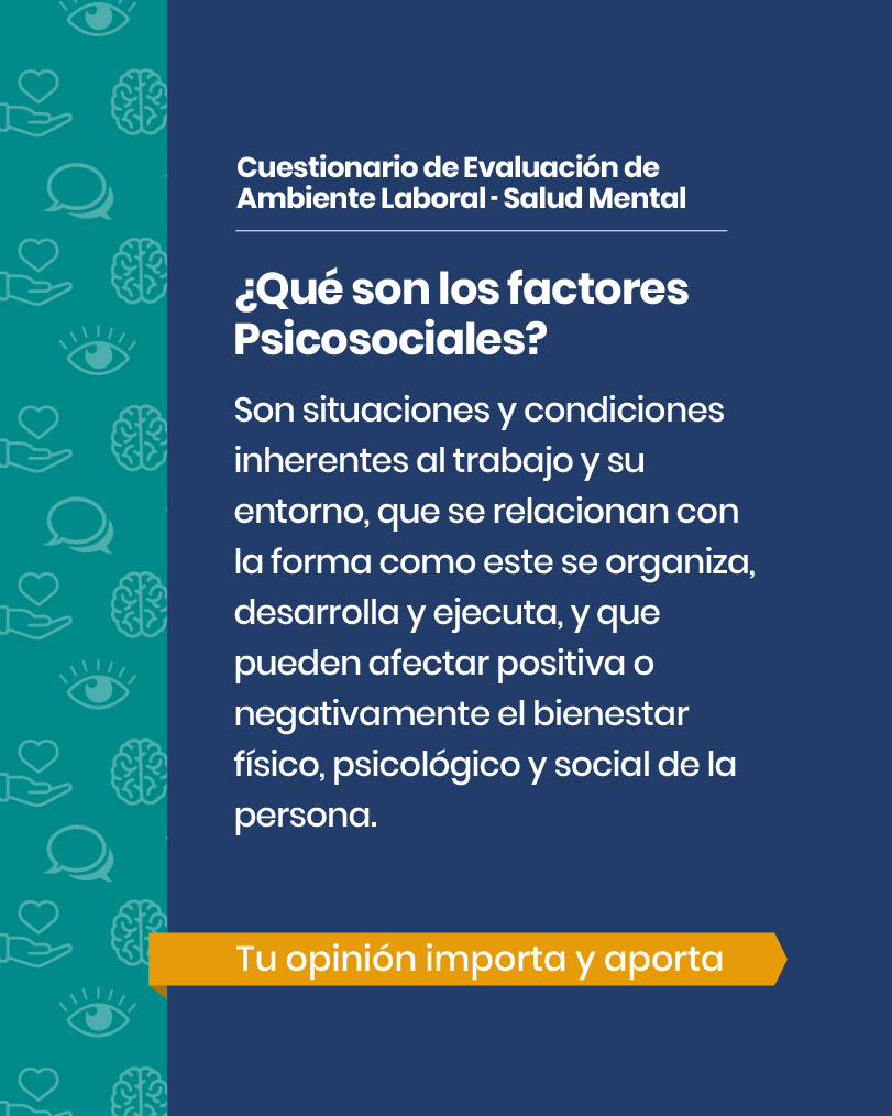 La segunda parte pregunta por los factores de riesgo psicosocial en 12 aspectos o dimensiones: carga de trabajo, exigencias emocionales, desarrollo profesional, reconocimiento y claridad de rol, conflicto de rol, calidad del liderazgo, compañerismo, entre otros. Completando en total 88 preguntas.